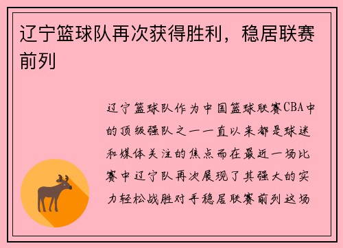 辽宁篮球队,作为中国篮球联赛(CBA)中...